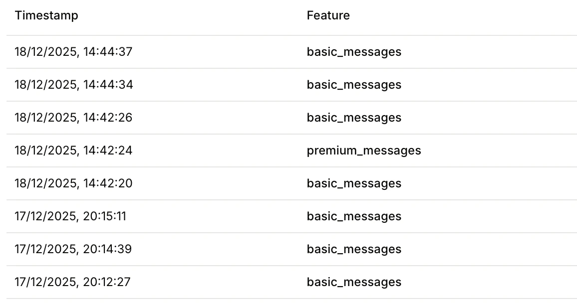 We just released two new endpoints to retrieve usage data that your customers have sent to Autumn.You can use this to display a billing event log, and a timeseries chart of usage data, so you can provide first-class billing observability out of the box!- List Events: React hooks and API reference