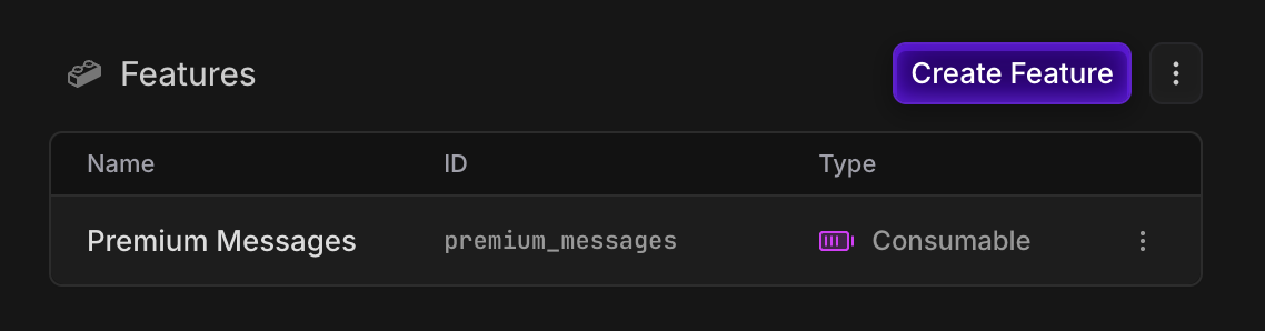 Create ametered consumable feature for our premium messages, so we can track its balance.