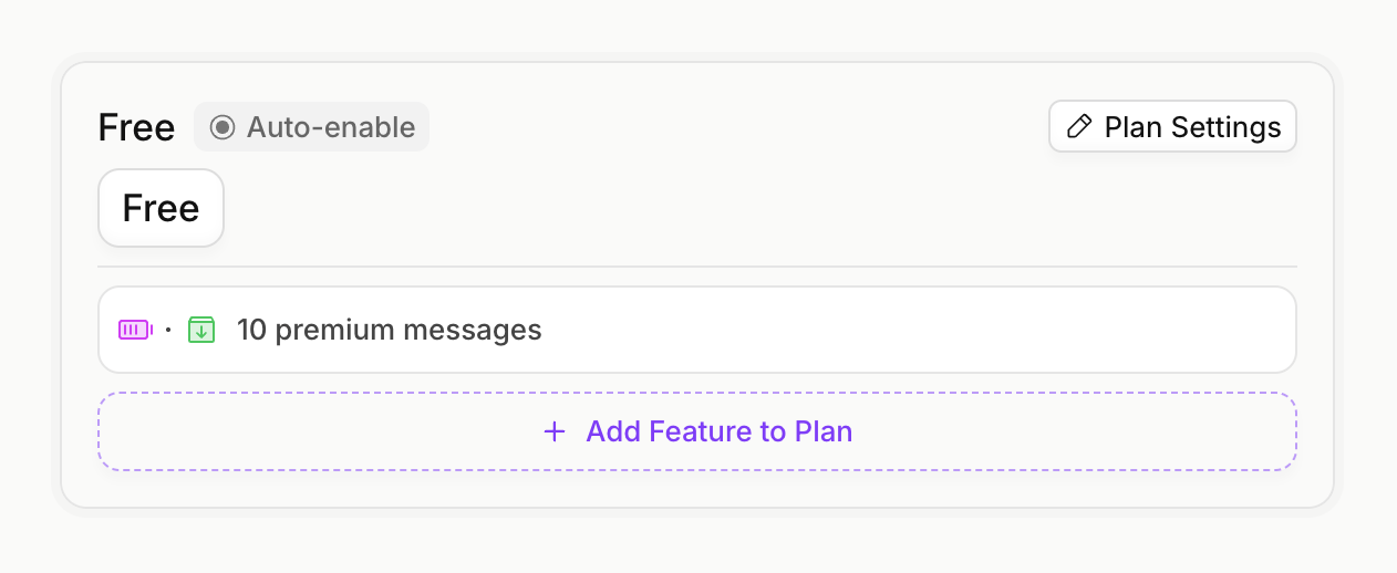 When your user signs up, create an Autumn customer. This will automatically assign them the Free plan, and grant them 10 premium messages.2